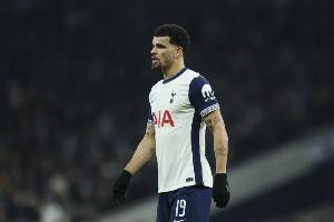 记者表示,今日热刺进行了欧冠对阵比利亚雷亚尔的赛前训练,队内前锋索兰克缺席。索兰克由于脚踝伤势,本赛季在联赛登场了两次。