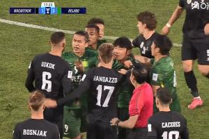 第17分钟,池忠国飞铲放倒对手,双方随后爆发冲突。