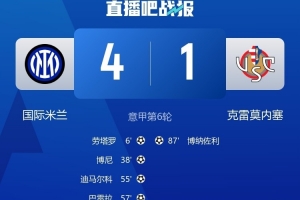联赛3连胜!国米4-1大胜克雷莫内塞博尼1射3传劳塔罗破门
