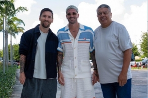 塔皮亚社媒晒与梅西、德保罗的合照,调侃配文:“这两个家伙在搞什么名堂😂😂再次见到你们真开心。”