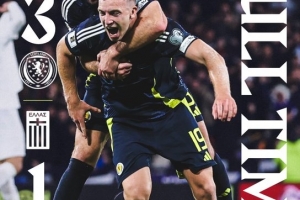 世预赛-苏格兰3-1击败希腊,积7分与榜首丹麦同分