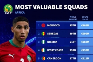 体育资讯10月12日讯 德国转会市场网更新非洲足联国家队身价排名,2022世界杯四强球队摩洛哥以4.03亿欧元总身价高居榜首,塞内加尔(2.96亿欧元)与尼日利亚(2.82亿欧元)分列二、三位。