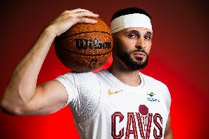 骑士内线南斯本场比赛在场上表现相当活跃,虽然投篮手感不佳,但拼抢前场篮板积极,防守端也多次抢断。