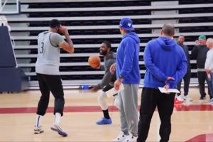 别闹伤还没好呢!欧文训练时想和浓眉单挑 被基德及时制止