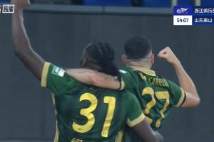 体育资讯10月18日讯 这球精彩!奥乌苏转身+右脚爆射破门,浙江2-1反超泰山