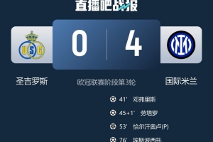 欧冠3连胜!国米4-0圣吉罗斯劳塔罗破门+失单刀皮奥传射+2失空门