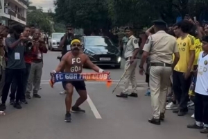 尽管C罗没有随利雅得胜利来到客场,但印度球迷对这场比赛仍然充满热情,有印度球迷在街头模仿C罗的标志性庆祝SIU,他的胸前写有“果阿”,背后则是彩绘的“CR7”字样。
